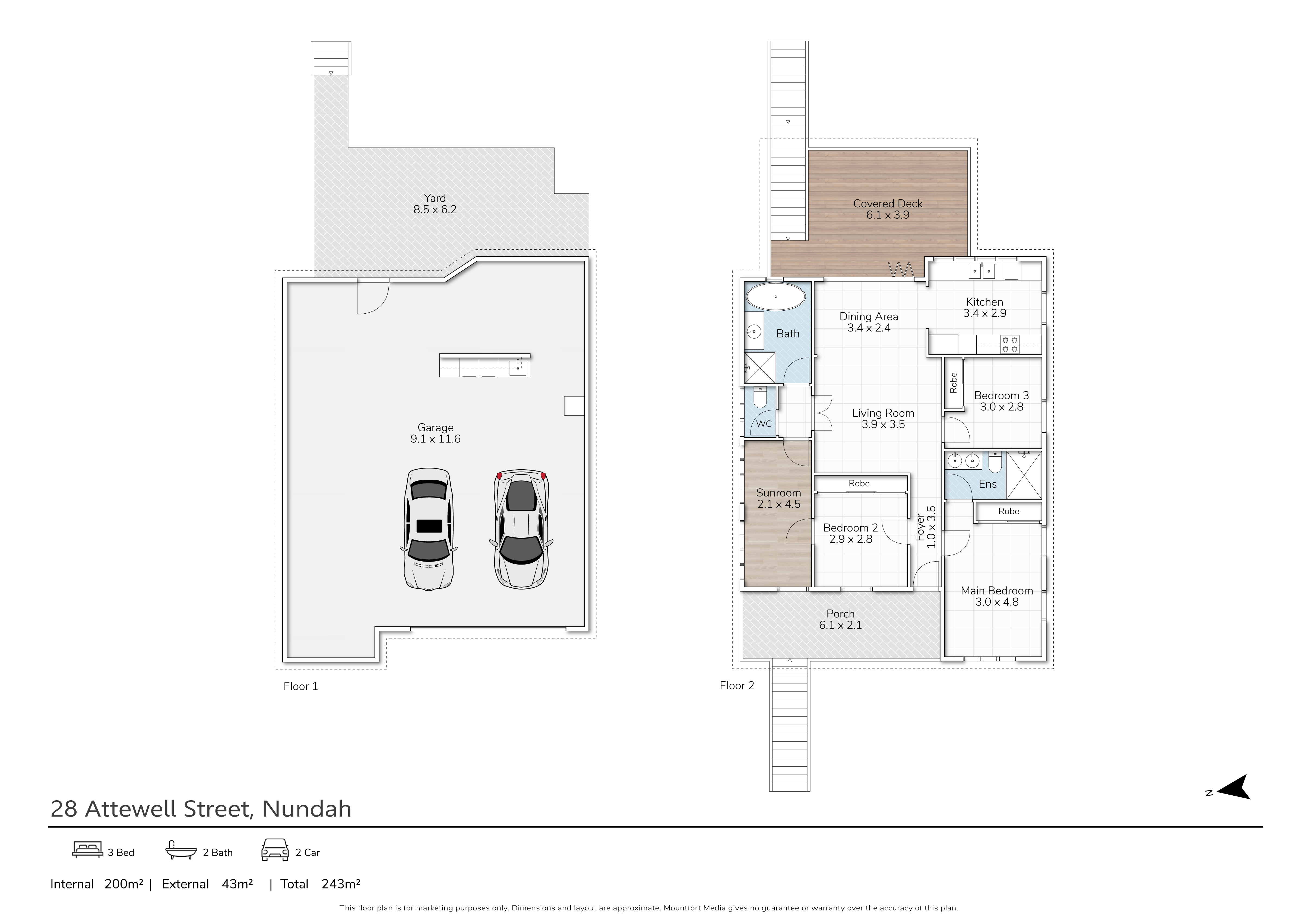 -Covered rear entertainer’s deck with insulated fly-over roof and a prized north-east aspect